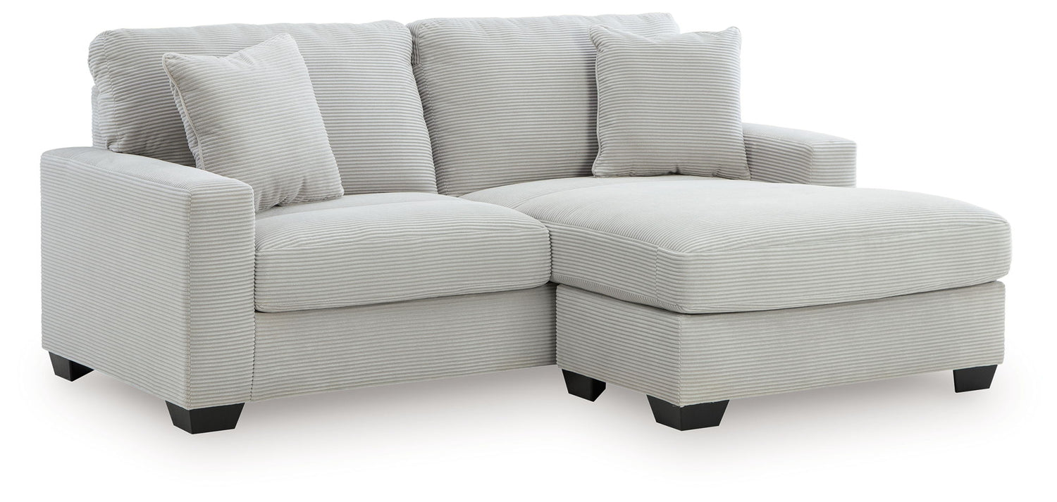 The crisp neutral hue and striking design details of this sofa chaise create a living room that expertly reflects your modern taste. For irresistibly cool textural appeal, the ultra-soft fabric is enhanced by a small-scale corded look. With a clean-lined silhouette complete with track arms, this sofa chaise allows you to take a trend-right approach to everyday living.