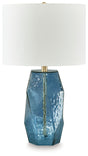 Clearly a contemporary choice, this striking table lamp wows with understated elegance. Its faceted blue glass base adds rich texture and a warm glow to a bedroom or living area, making it the perfect accent to brighten your home and make every moment shine.