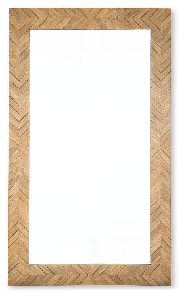 Simply striking and strikingly simple. With its clean lines and impressive stature, this floor mirror is a well-designed complement to your everyday routines. Its right-on-trend chevron pattern gives the warm and welcoming light brown finish a contemporary edge.