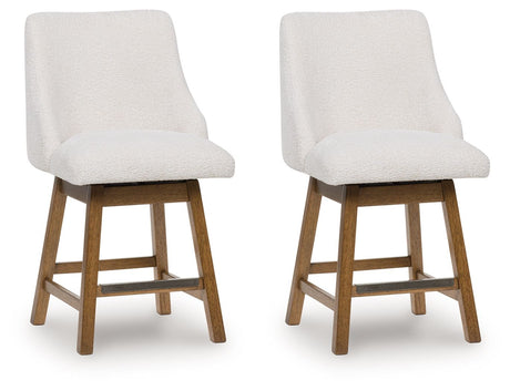 Cabalynn - Upholstered Swivel Barstool (Set of 2) - Oatmeal / Light Brown