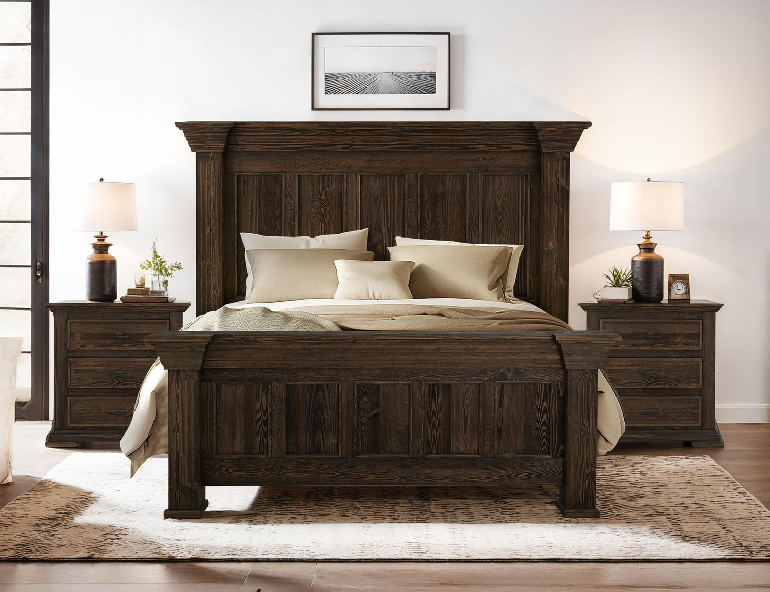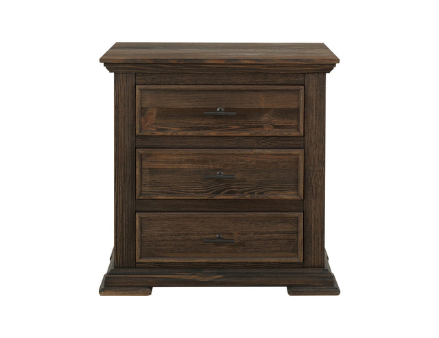 3 Drawer, Nightstand. Introducing the exquisite Desire Nightstand, expertly crafted from solid wood to enhance both style and functionality in your space. This Nightstand features a sophisticated multi-step lacquer finish that highlights the wood's natural grain. With its elegant deep brown color, the collection blends modern and traditional elements, making it a timeless addition to your home. The durable mortise and tenon construction ensures long-lasting quality, while the three spacious drawers come with solid wood fronts and English dovetail joints for added strength. Hafele steel slides provide smooth operation for the drawers. The sleek metal pulls with a non-chip matte black finish add a touch of modern elegance to this classic piece.