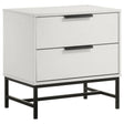 Sonora 2-Drawer Nightstand Bedside Table – Modern White Bedroom Accent with Black Base, Slim Bar Pulls, Minimalist Design, and Practical Storage