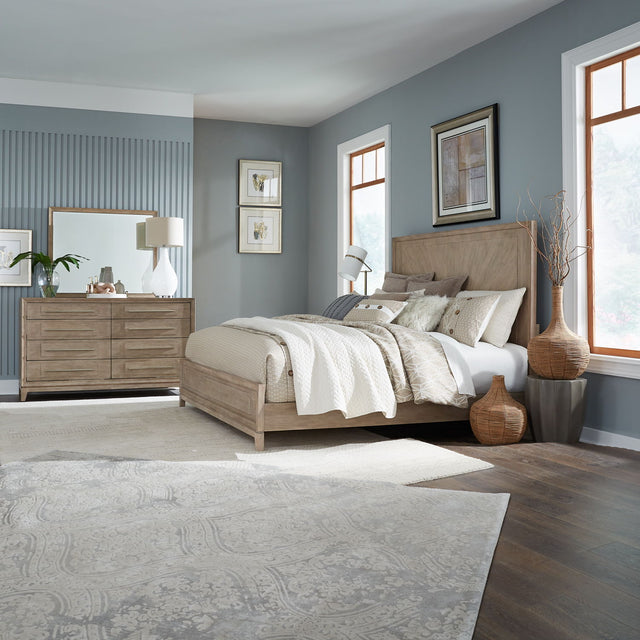 Brentwood - 3 Piece Bedroom Set (King Panel Bed, Dresser & Mirror) - Sandstone