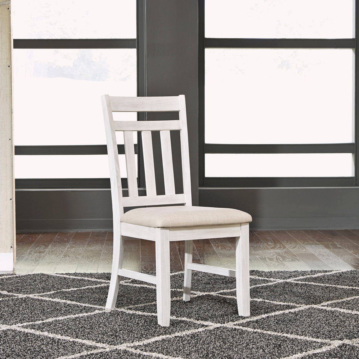 Sit in comfort and style with the Summerville slat back side chair. Crafted of rubberwood solids, this piece features a soft whitewash finish and cream linen upholstery, tapered legs, and nylon chair glides to protect your flooring. Summerville offers a combination of style and function.