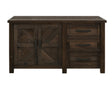 3 Drawer, 2 Door, Buffet. The Dutton Buffet is a masterpiece of country cottage style, symbolizing stability and rootedness in an ever-changing world. Designed with both style and utility in mind, it features three drawers and two doors, This clever design enhances functionality while maintaining an organized space. The visible wood grain and natural knots add texture and authenticity to the piece. Finished in a rich brown stain, it highlights the beauty of the wood while enhancing its rustic and timeless appeal. This design ensures stability while maintaining a refined, country-inspired aesthetic.