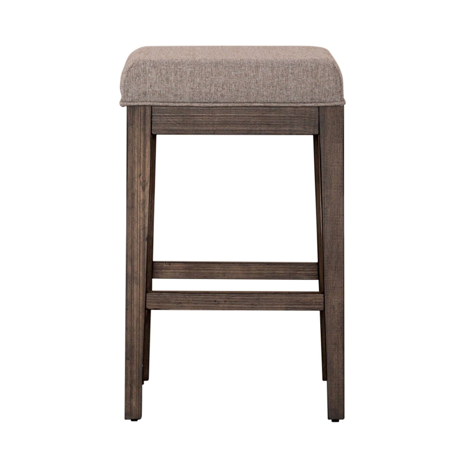 If you enjoy rustic the Arrowcreek console stool is for you. Finished in a weathered stone. Features solid pine tapered legs with anupholstered padded seat in a grey taupe fabric.