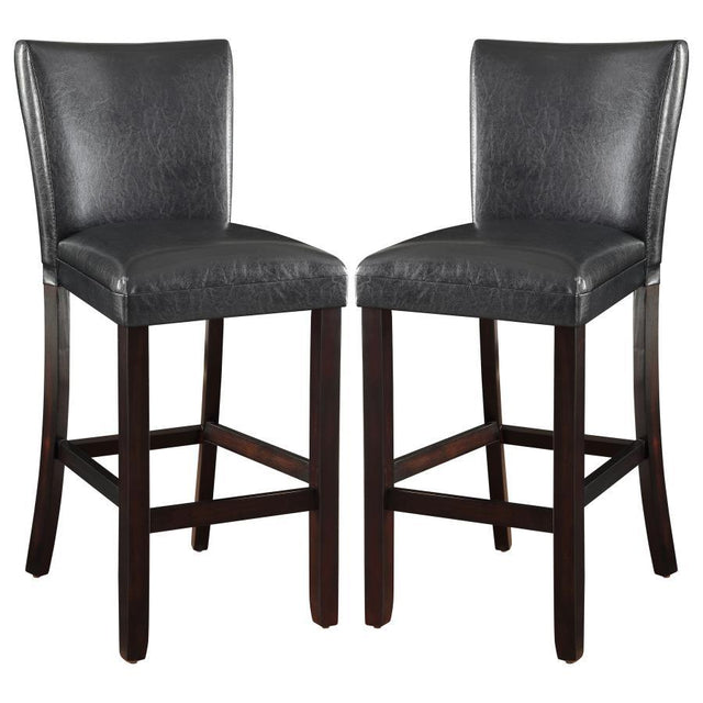 Elevate your kitchen or entertainment space with the Alberton Leatherette Upholstered Bar Chair Set of 2 in Black. Each bar stool features a wide backrest, convenient footrest, and plush leatherette seat for luxurious comfort. Curved rear legs add elegance and stability, while the sleek black upholstery complements diverse décor styles. At 29 inches tall, these stools are perfect for counters, home bars, or casual dining areas, offering a blend of contemporary design, practicality, and enduring style.