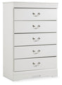 Anarasia - Five Drawer Chest - White is backordered and will ship as soon as it is back in stock.