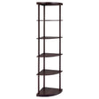 Bonwick – 5-Shelf Corner Bookshelf with Space-Saving Compact Design, Rubberwood Frame, and Elegant Cappuccino Finish for Home or Office