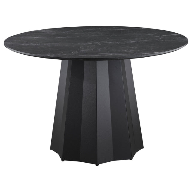 Camden - Round Faux Marble Top Dining Table - Black