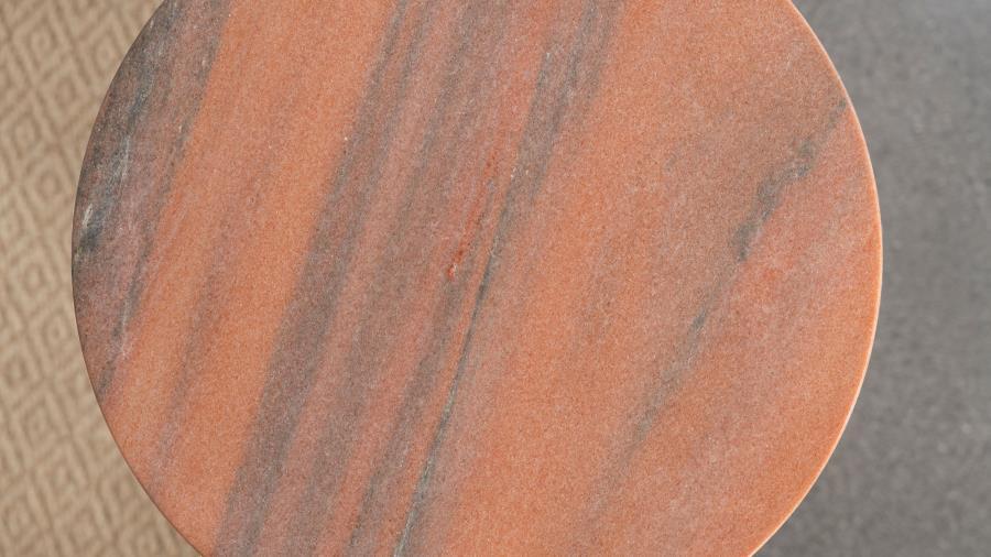 The Colima side table blends natural warmth with contemporary glam, featuring a round peach marble-inspired top that highlights organic grain patterns. Its artistic aesthetic adds visual intrigue and sophistication to living rooms, bedrooms, or entryways.