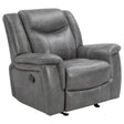 Conrad Upholstered Padded Arm Glider Recliner – Gray Faux Leather, Overstuffed Cushions, Smooth Reclining Motion, Perfect for Living Room or Den