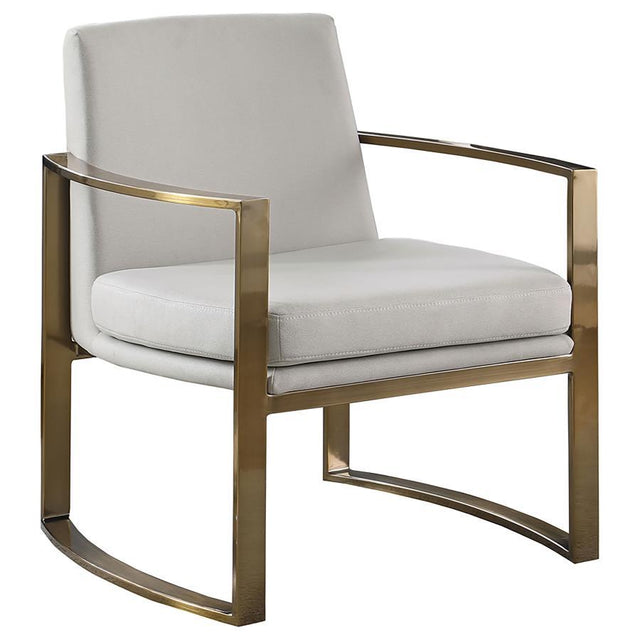 Cory - Upholstered Arched Arm Accent Chair – Modern Leatherette Chair with Padded Cushioning, Brushed Bronze Accents, and Stylish Living Room Seating