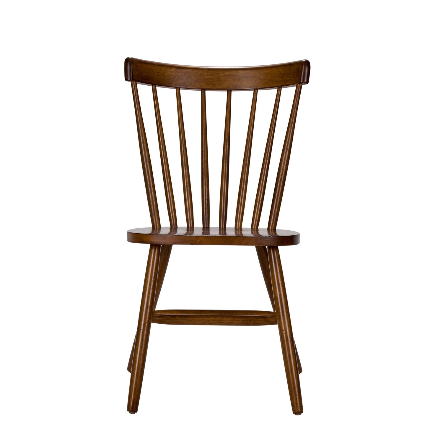 Sit in comfort and style with the Creations II Copenhagen side chair. Crafted of rubberwood solids, this piece features a tobacco finish, nylon chair glides to protect your flooring, a sturdy spindle back, splayed legs, and contoured seat for added comfort.