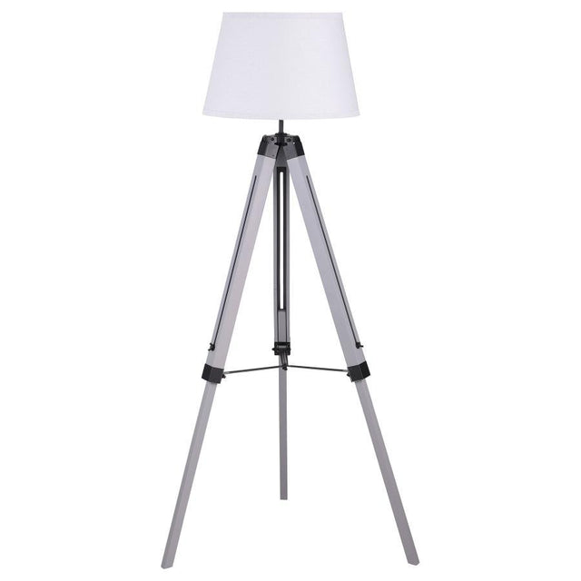 The Dayton Floor Lamp combines contemporary flair with studio-inspired style. Its tripod design is ideal for retro-modern interiors, featuring extended metal legs paired with weathered gray wood accents that bring a subtle rustic charm to bedrooms, living rooms, or home offices.