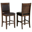 Enhance your kitchen or home bar with the Dewey Upholstered Counter Chair Set of 2 in Walnut. Featuring a rich walnut rubberwood frame, smooth brown faux leather upholstery, and a woven panel back, these counter-height chairs combine timeless style with practical comfort. Ideal for daily meals, casual entertaining, or bar seating, the sturdy construction, padded seat and back, and elegant silhouette make these chairs a versatile and enduring addition to any dining or counter-height space.