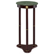 The Edite Round Marble Top Accent Side Table in Merlot brings refined elegance to contemporary and traditional interiors alike. Its genuine green marble top provides a luxurious focal point, while the solid rubberwood and engineered wood frame offers lasting durability. Gold-accented three-pronged legs add visual interest and a touch of glamour. Compact yet versatile, this side table can function as a plant stand, small end table, or decorative display piece. Perfect for living rooms, bedrooms, or cozy corners, it combines style, practicality, and timeless appeal in one sophisticated piece.