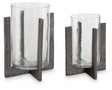 Garekton - Candle Holder Set (Set of 2) - Clear / Pewter Finish