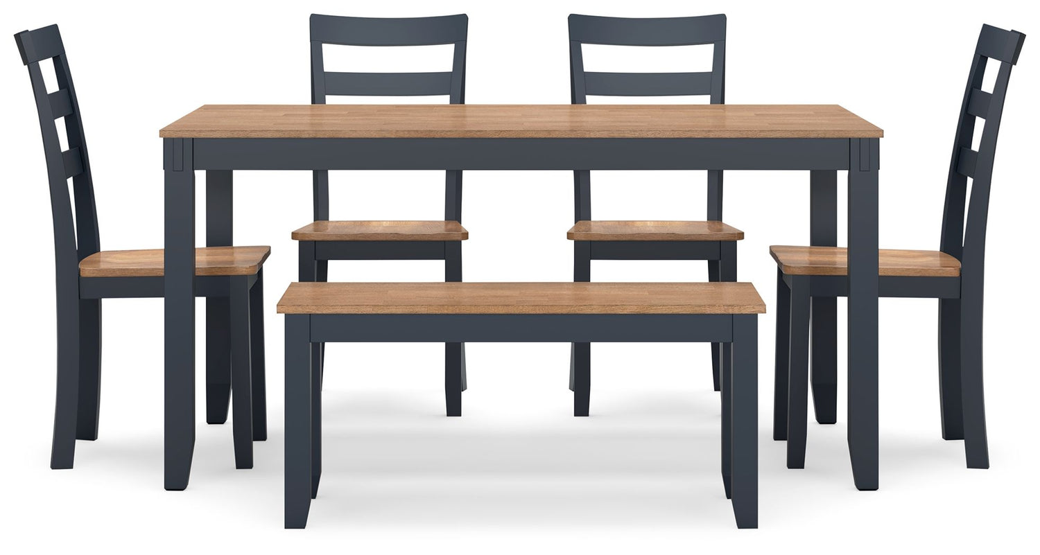 Complement your home’s simply relaxed sensibility with this dining table, chairs and bench. A hue offers a chic contrast to the natural wood tone, for a casual look that vibes with a variety of aesthetics. Whether you're sipping your morning coffee, settling in for dinner or working from home, this set is smartly designed for everyday comfort and style.