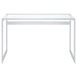 Hartford Glass Top Writing Desk – Modern Chrome Frame, Clear Tempered Glass Work Surface, Sleek Minimalist Design for Home Office, Study, or Commercial Use