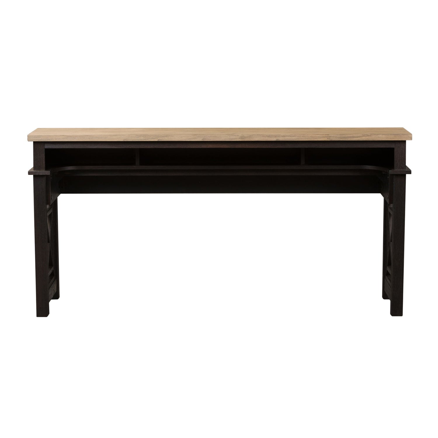 Whether your style is rustic, urban or farmhouse Heatherbrook is sure to complement. Crafted of poplar solids and acacia veneers with a charcoal and ash finish. Features appealing open grid end panels with block legs, two electrical outlets and two USB ports for easy access charging, three cubbies for storage. Stools offer upholstered padded saddle style seats for comfort with nail head accents. Comfortability fits three barstools and is perfect for behind your sofa or kitchen nook. Kit consists of one console bar table and three console stools.