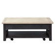 Transform your space with the Heatherbrook lift top cocktail table. Crafted of poplar solids and acacia veneers, this piece features a charcoal and ash finish, a top with the ability to extend to a height of 27”, bottom shelf for additional storage, appealing open grid end panels, casters for easy moveability, anchored by a block leg design. This one of a kind lift top cocktail table would be a wonderful accent piece in any home.