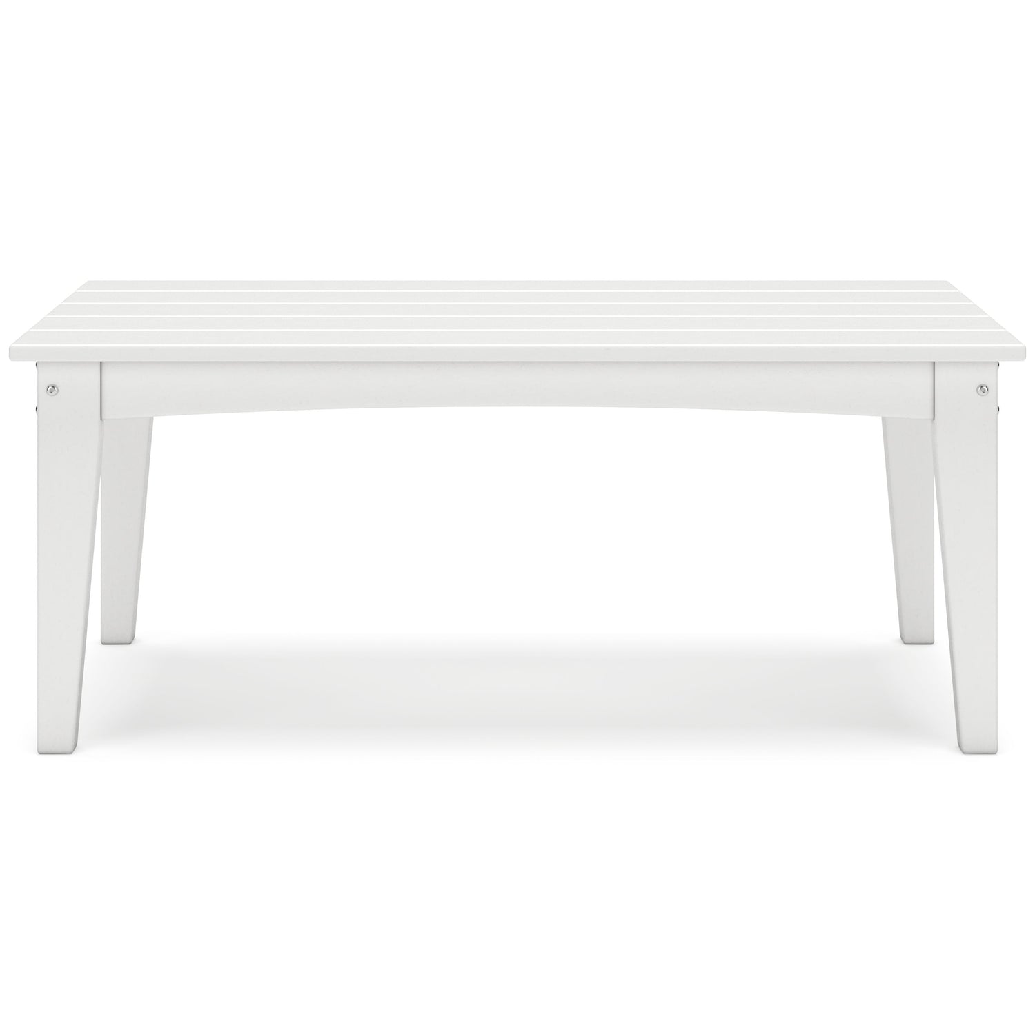 Drift into outdoor entertainment bliss with this coffee table. Dressed in a bright white for a fresh feel, it weathers sunny summer days and cozy winter nights with durable MEGA TUFF™ HDPE material. When it comes to form and function, the table's rain-shedding slatted design simply goes with the flow. Use it to hold outdoor decor, drinks or snacks.