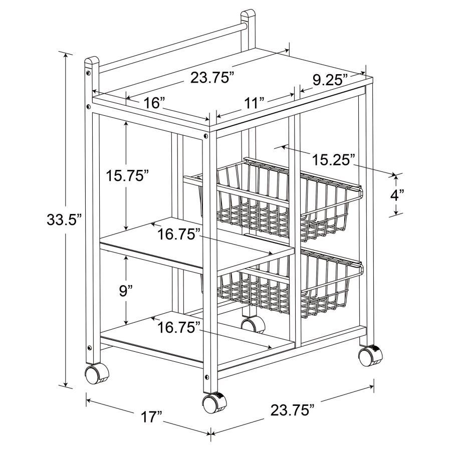 Crafted in a natural brown and white finish, this cart blends contemporary aesthetics with practicality. Two wire baskets add extra storage for fresh produce or snacks, while the durable top shelf accommodates microwaves, toasters, or decorative kitchen accents.