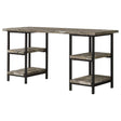 Kemper 59" 4-Shelf Writing Desk in Weathered Brown with Black Metal Legs – Rustic Industrial Style Home Office or Study Desk with Open Storage