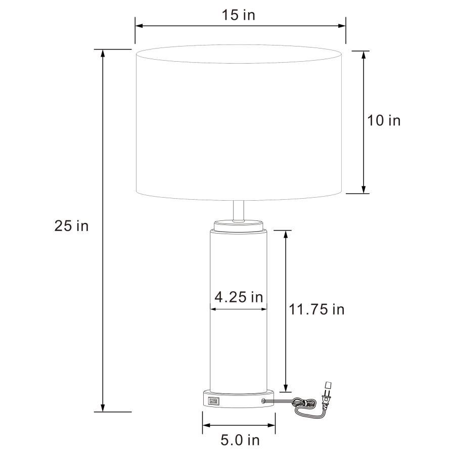 A textured white drum shade offers gentle illumination while minimizing glare. The included 9W energy-efficient LED bulb provides warm, inviting light that enhances reading, ambiance, or decorative settings in modern and transitional interiors.