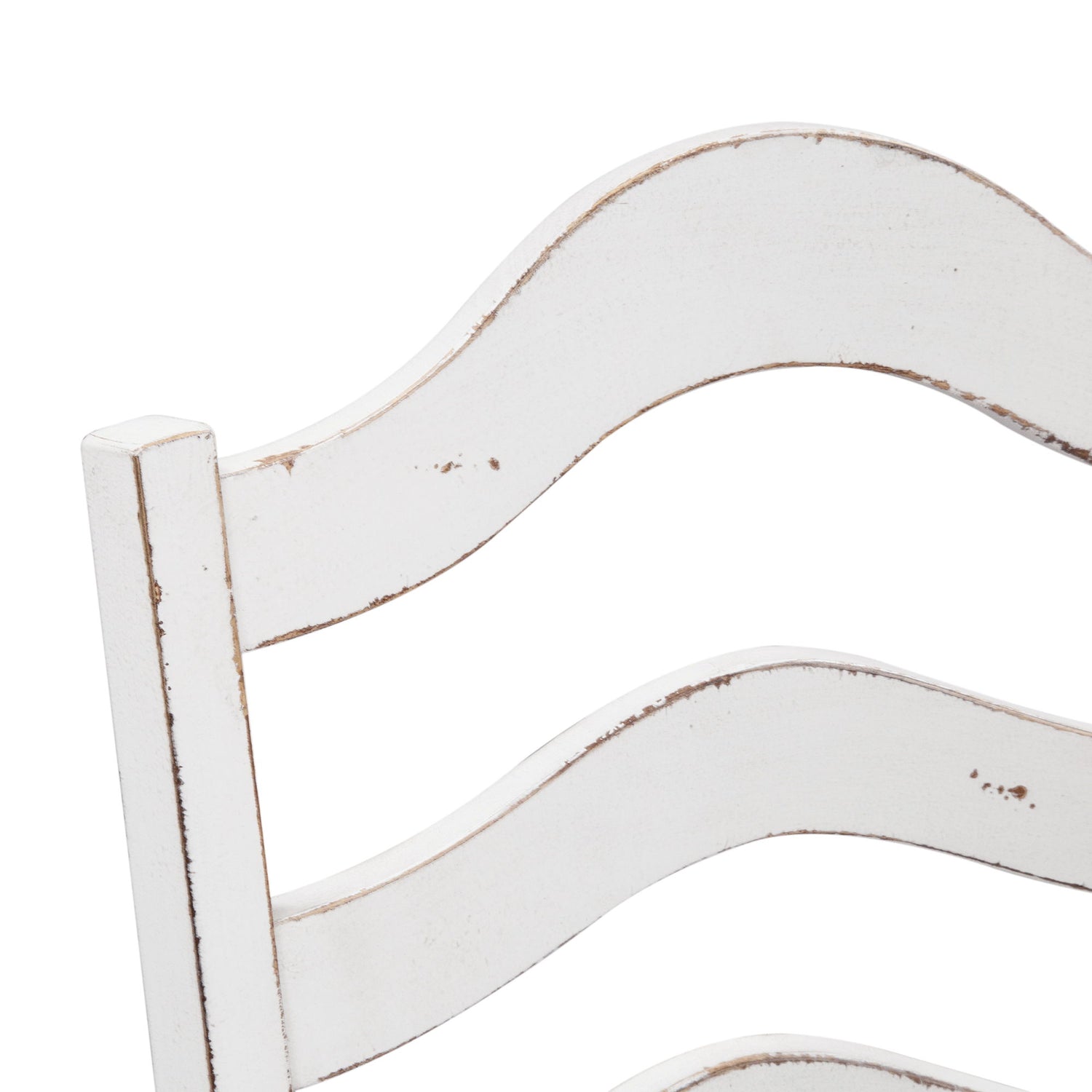 Sit in comfort with the Magnolia Manor ladder back side chair. Crafted of rubberwood solids, this piece features the perfect blend of European design, nylon chair glides to protect your flooring, and an arched back and wooden saddle seat, anchored by beautifully turned legs. Warm antique finishes and artistic distressing along with grand scale create a piece to be passed to generations.