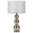 The Mineta table lamp features a sculptural stacked orb design finished in antique silver, offering a statement piece that elevates any living space. Its textured mercury glass finish adds shimmer, depth, and retro-inspired sophistication to bedrooms, living rooms, or offices.