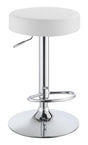 For the kitchen or home bar, this adjustable bar stool is slick and sharp. Chrome base features oval footrest for convenience. Wide round chrome base allows it to withstand every thrilling Sunday of football. With no backrest, it's perfect for a quick lunchtime sandwich or to argue with the ref after a bad call.