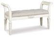 Realyn - Accent Bench - Antique White is backordered and will ship as soon as it is back in stock.