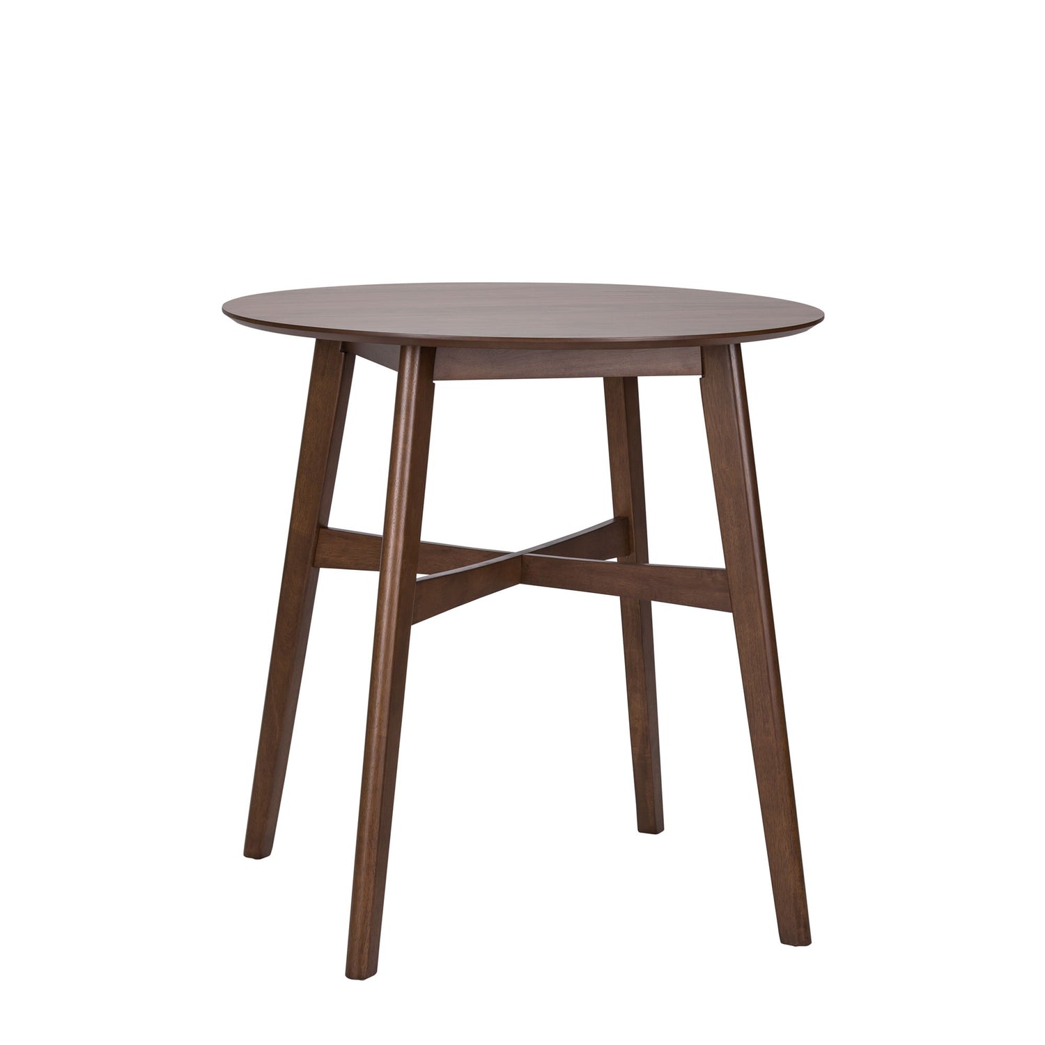 Gather the family around the Space Savers gathering table. Crafted of rubberwood solids and walnut veneers, this piece features a satin walnut finish, a fixed round top, "X" style center stretcher, and is anchored by unique splayed legs with a softly rounded edge. This table is sure to create a simplistic statement in any room.