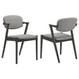 Elevate your dining area with the Stevie Padded Wood Dining Arm Chair Set of 2, a striking mid-century modern Z-chair design. Upholstered in plush fabric with padded seats and backrests, these chairs offer comfort for dining or relaxing. Solid hardwood frames feature a sleek black finish, straight front legs, and angled back legs that extend into armrests, delivering both stability and style. Perfect for modern dining tables or as accent seating in living rooms and home offices.