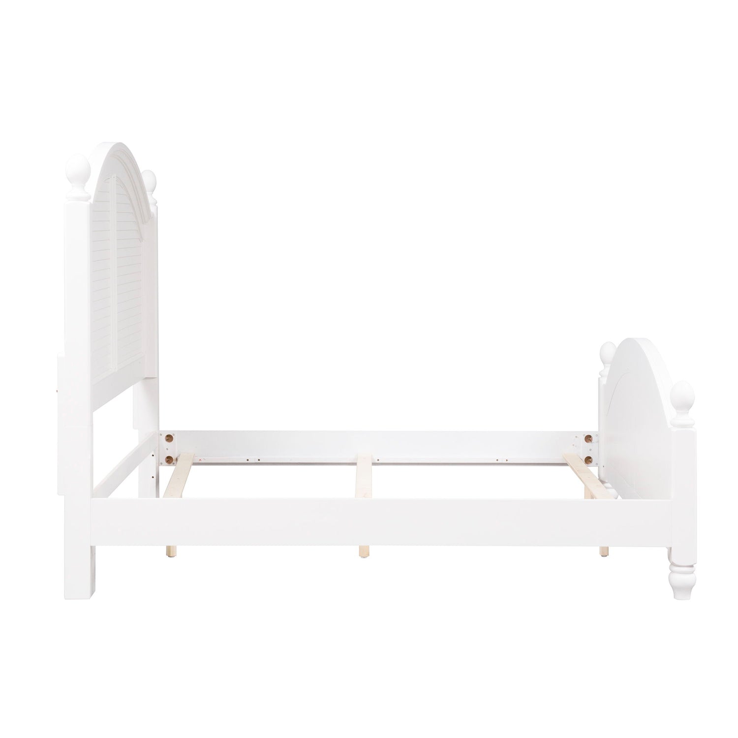 Have sweet dreams in this cottage style Summer House poster bed into your room. The oyster white finish is accented by louvered panels, arched crown molding, and egg-shaped finials, adding to the cottage charm. Made of pine and poplar solids, this bed features bolt-on rails and a center supported slat system, making this a sturdy and reliable bed.