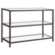 Trini 2-Shelf Glass Top Entryway Console Table - Black Nickel Frame, Tempered Glass Surfaces, Spacious Storage for Modern Spaces