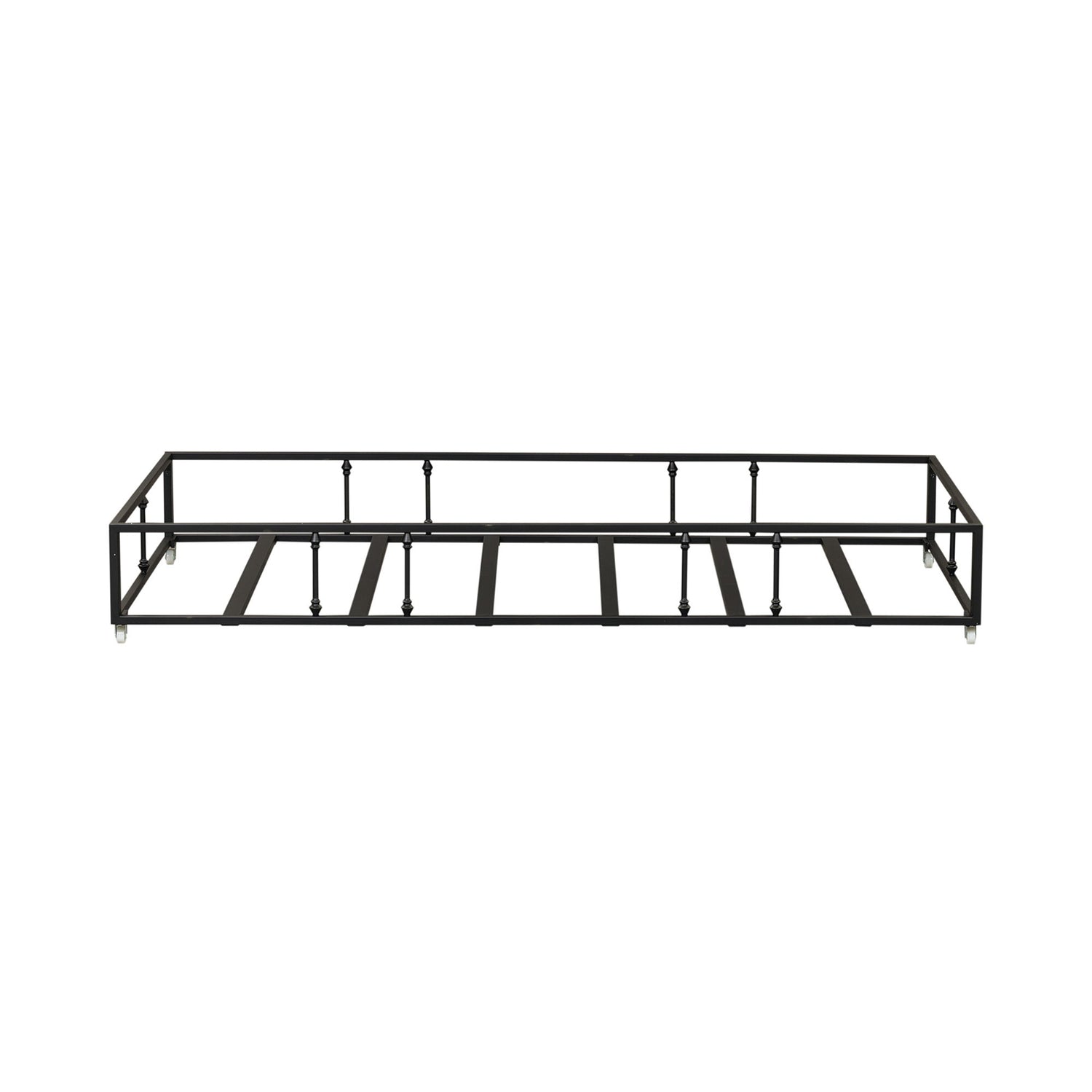 Add an extra bed without taking up any additional room with the Vintage Series trundle. Crafted of metal tube and finished in a beautiful antique white with wear thru. The trundle features turned spindles for decorative appeal and easily stores underneath the Metal Day bed when not in use. Features casters for ease of movement.
