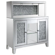 Yvaine 2-Door Mirrored Acrylic Home Bar Wine Cabinet – Silver Finish, Faux Diamond Detailing, Crystal Knobs, Open Back Shelf, Luxury Storage Display