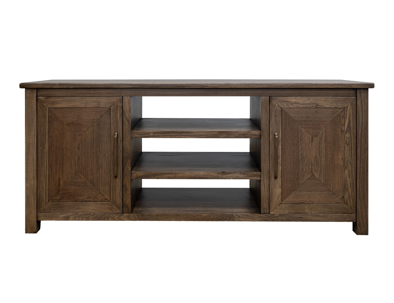 2 Doors TV Stand. Novus Lodge is a revamped version of our bestseller, the Lodge collection. The simplicity of its shapes and warm color palette makes it a timeless collection. Novus Lodge showcases lightly distressed premium woods such as poplar and oak in a warm brown finish that enhances the beauty and character of the wood.