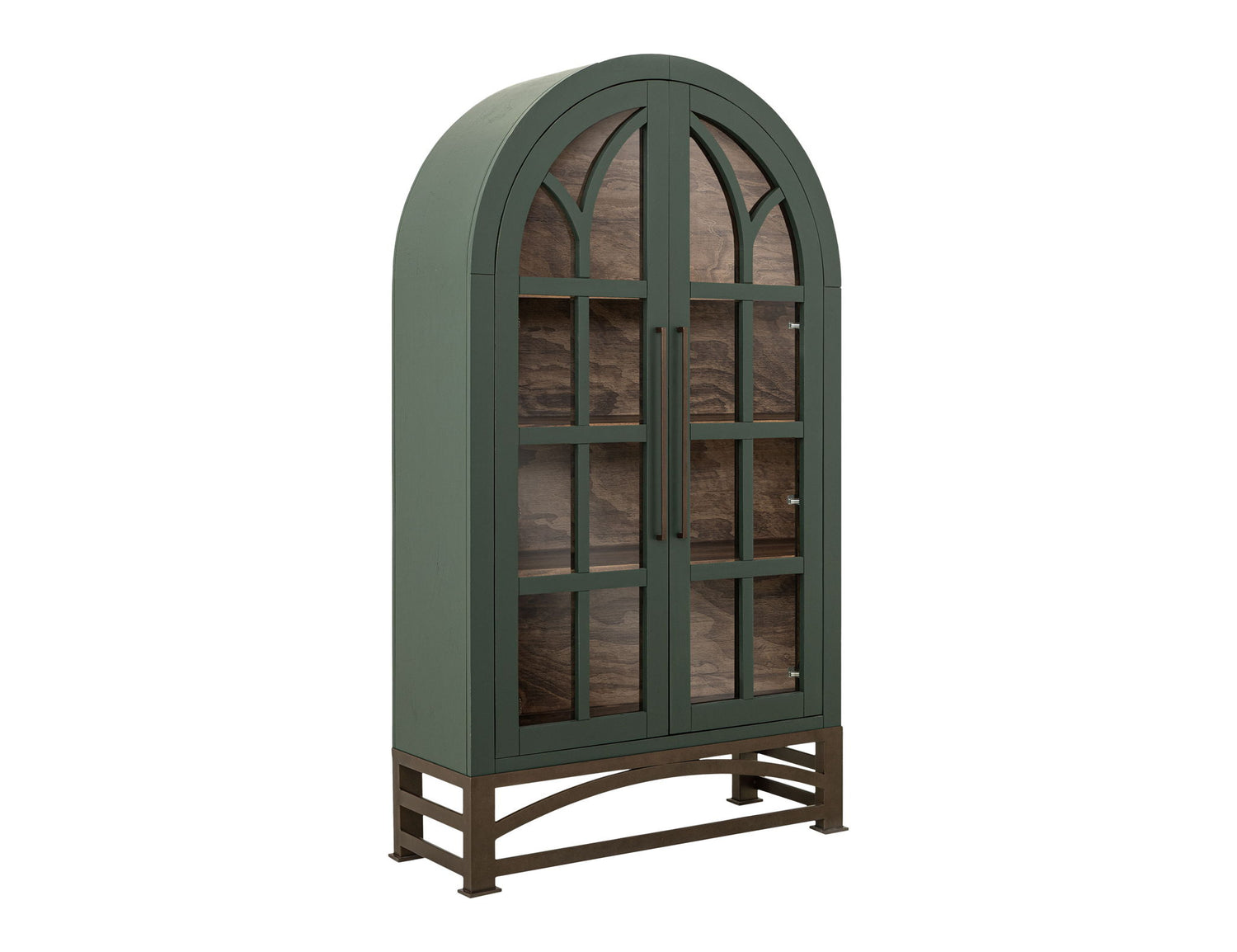 2 Glass Door Cabinet. Drawing inspiration from Mid-18th century French furniture, our Obsidian cabinets seamlessly blend the charm of the old world with contemporary design. Crafted from lightly distressed pine wood and elegantly set within a metal base, this cabinet features a beautifully paneled oval glass door, making it a timeless addition to your home.