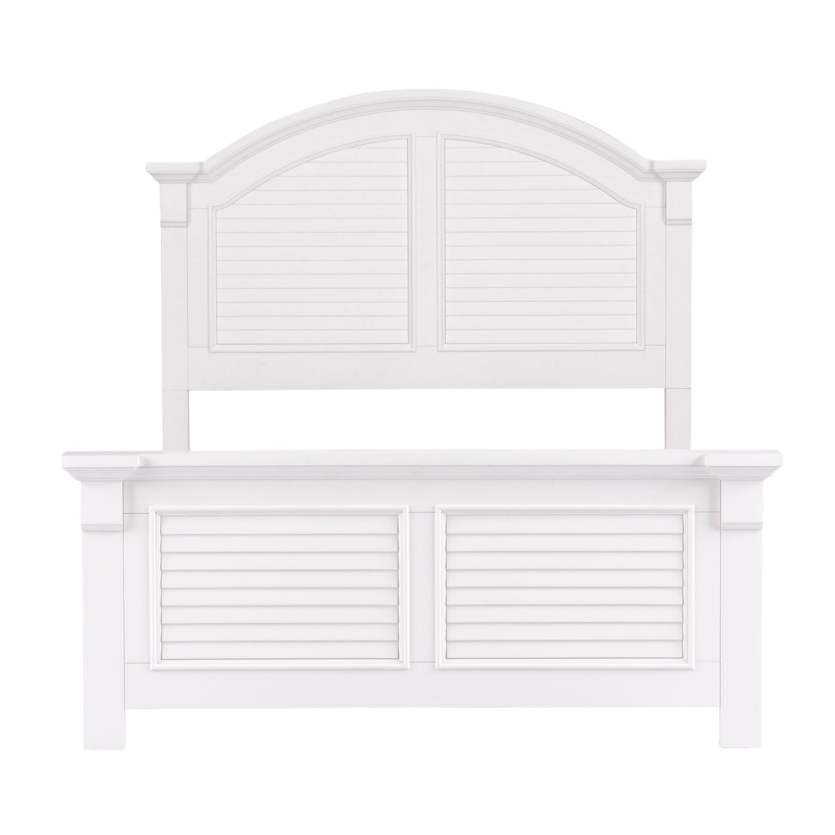 Live life beautifully with the Summer House I panel bed, dresser, and mirror. Crafted of poplar and pine solids this kit features an oyster white finish, bead molding, bun feet, full extension drawers with felt lined top drawers, and is accented with wooden knob hardware. The panel bed features louvered panels and arched crown molding. The dresser has six drawers of storage and pairs well with the arched louvered panel mirror with a beveled edge and bolt-on supports. With cottage design always in fashion, make the Summer House I a staple in your home.