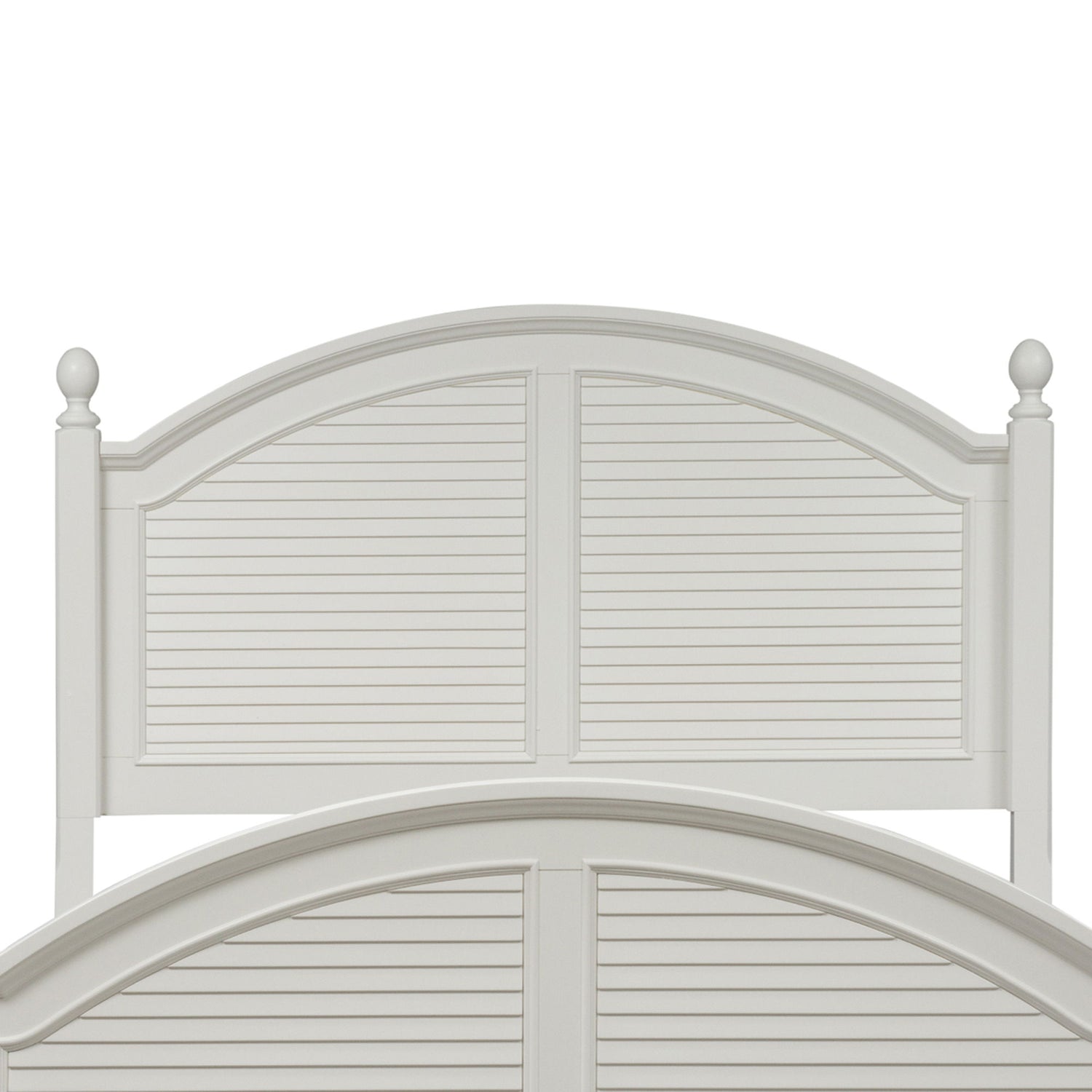 Features arched crown molding accented with a louvered back panel and flanked by two square post with top finale. Headboard can stand alone with Hollywood bed frame. Pair with the footboard and rails for a complete bed.