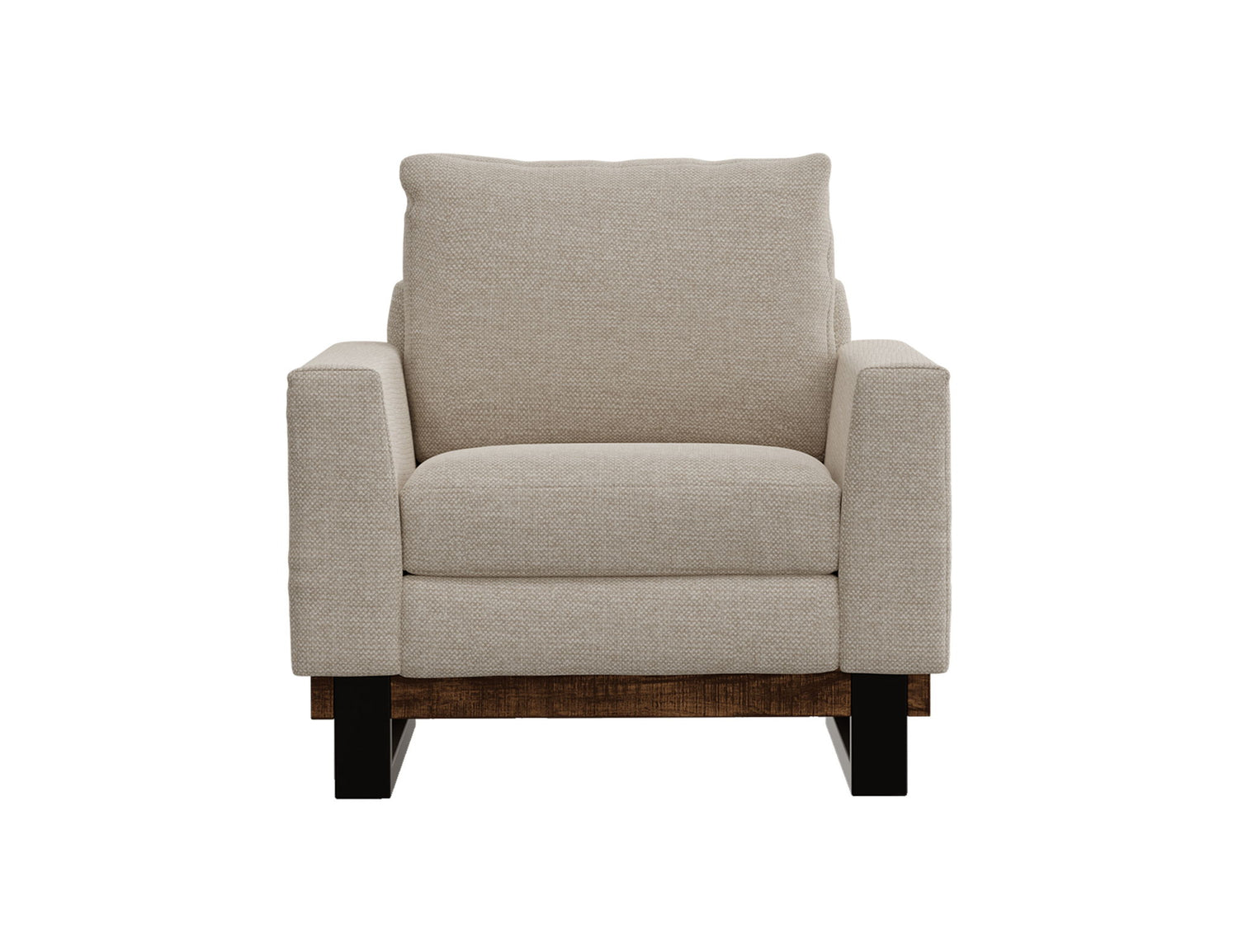 Metal & Wood Base, Armchair. Elevate your living space with the luxurious comfort and timeless style of the Blackburn collection. This armchair features a sturdy base crafted from a combination of wood and metal, creating a seamless fusion of materials that radiates a contemporary aesthetic. The Blackburn collection is your key to creating the ideal haven for gatherings and relaxation.
