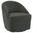 Upgrade your living room or den with the cozy, modern character of an upholstered accent chair. It swivels, encouraging conversation and offering versatility in a multifunctional living space. The chair is a take on a classic club silhouette, featuring a rounded barrel back that offers plenty of support and comfort. Soft upholstery complements in living areas and dens to equally stylish effect. The chair offers its full swivel with a metal base that adds a finish that's unobtrusive and neutral.