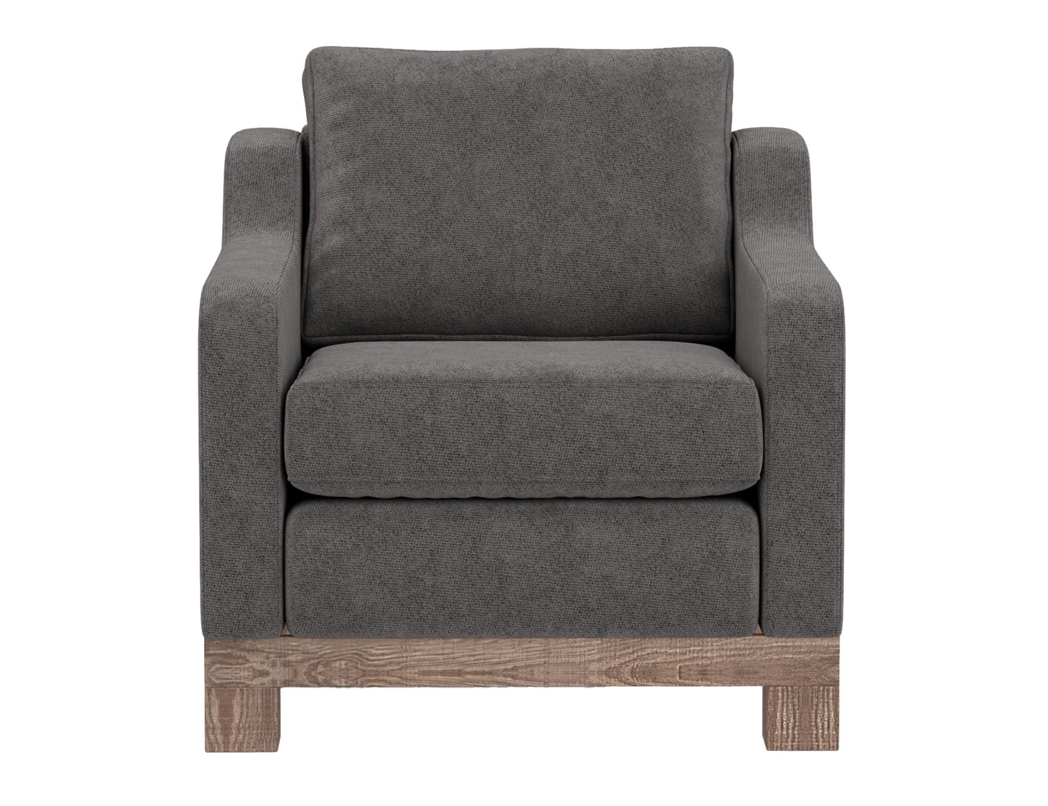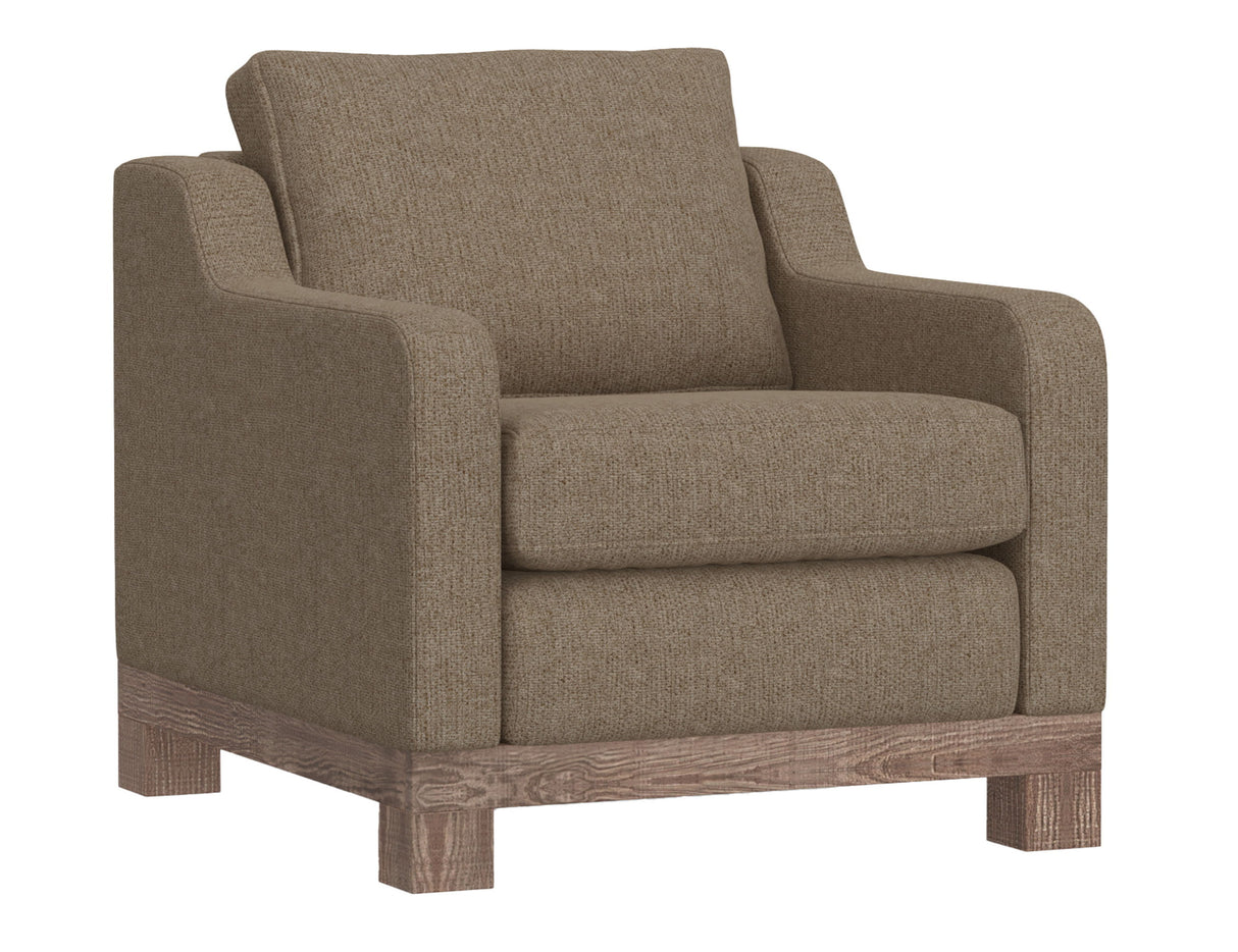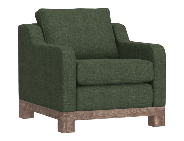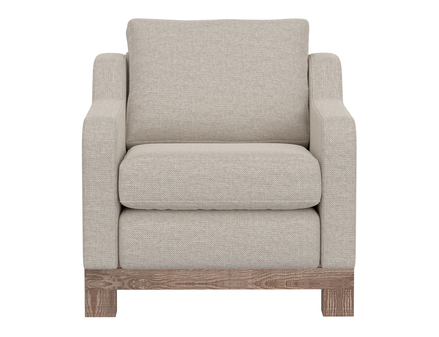 Wooden Frame & Base, Armchair. With its chunky, wide silhouette, the Samba collection infuses your living room with a touch of traditional charm. Supported by a sturdy frame crafted from solid pine wood, it rests gracefully on low-profile block feet with a rich hue.