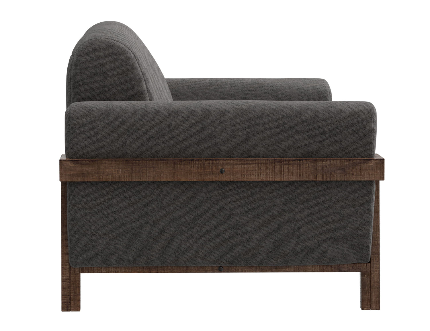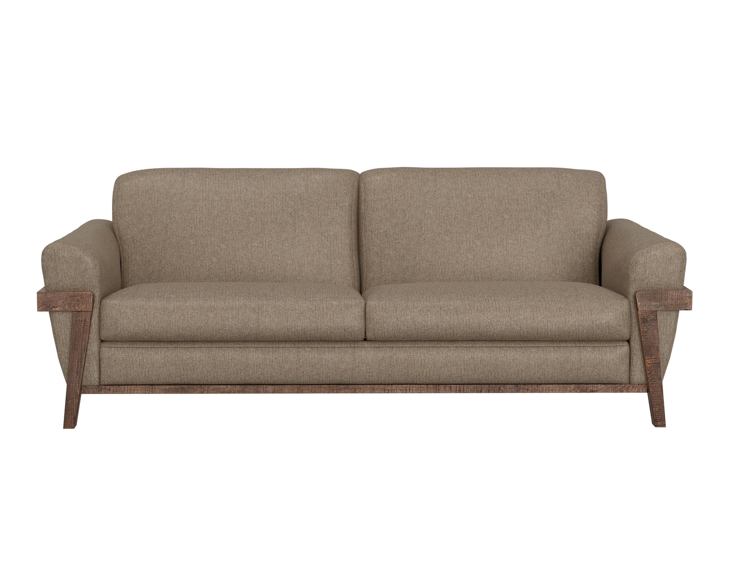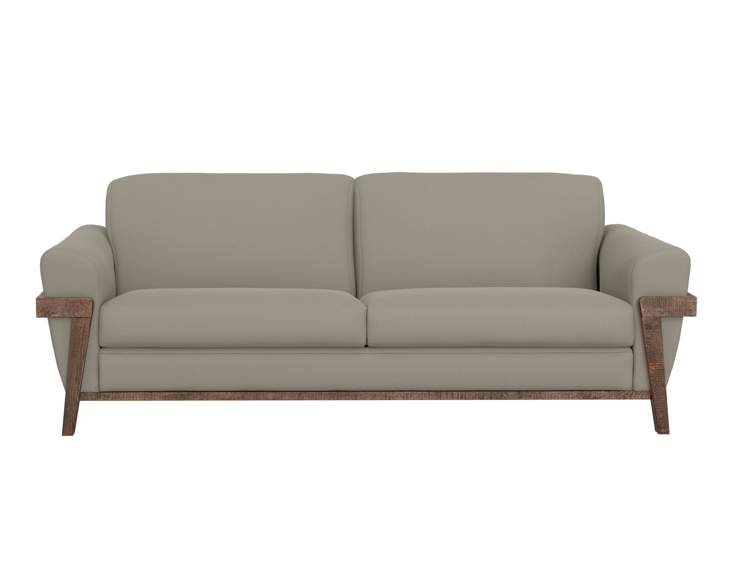 Wooden Frame & Base, Sofa. Introducing our captivating Loft Brown Collection, where traditional design seamlessly merges with mid-century modern details in this stunning transitional piece. With its distinctive exposed pine wooden legs and frame, retro-inspired rolled arms, and meticulous craftsmanship, this collection features solid wood and 15mm-thick, 5-layer plywood construction, ensuring both the strength and durability of the frames.