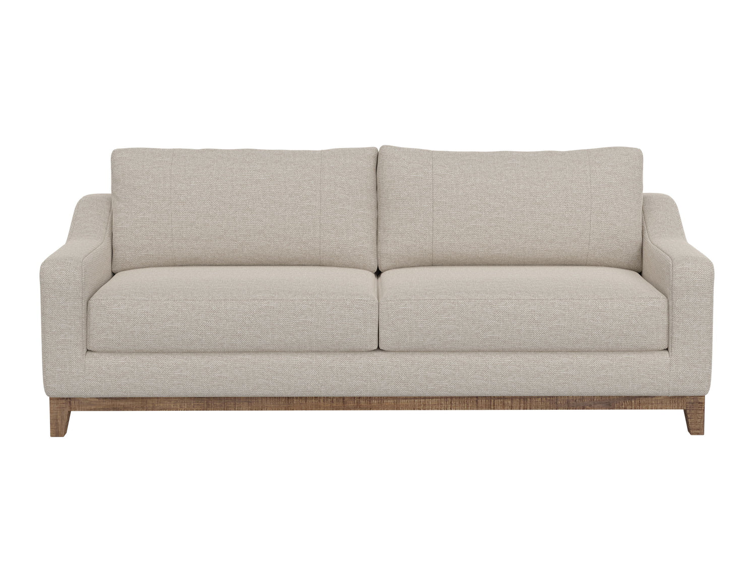 Wooden Frame & Base, Sofa. The Olivo collection seamlessly blends clean lines with a harmonious fusion of both organic and geometric shapes, offering unparalleled comfort for your space with its mid-century modern style, marked by subtle curves on padded armrests.