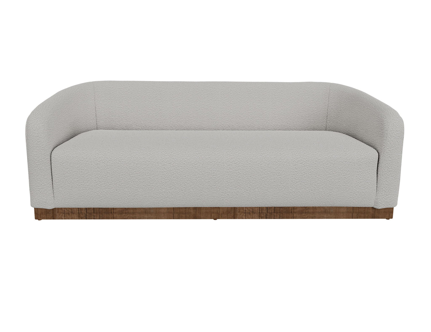 Wooden Frame & Base, Sofa. The Suomi Collection, distinguished by its flowing form, embodies the Zen-inspired Japandi style. This sofa minimalist design is harmoniously complemented by its wooden base crafted from pine wood, with its wraparound back seamlessly merging into rounded arms, creating a cradle for an exceptionally thick and comfortable cushioned seat